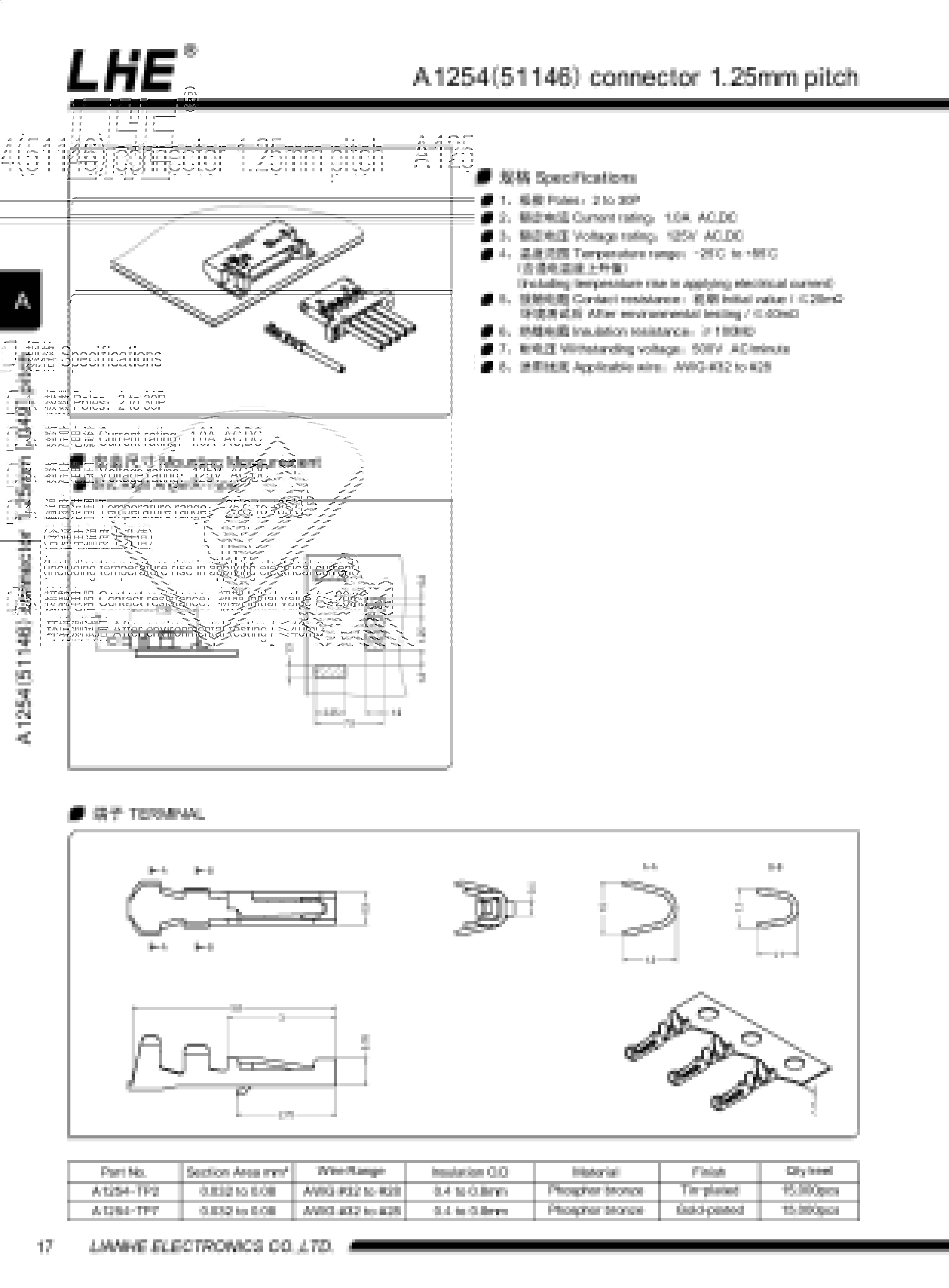 A1254(51146)系列間距1.25mm,可替代molex 51146 系列。包含膠殼,連接器,端子,為1.25 超薄款,體積小,性能穩定等諸多特點,多用于手機等需要用到的高精密連接器。