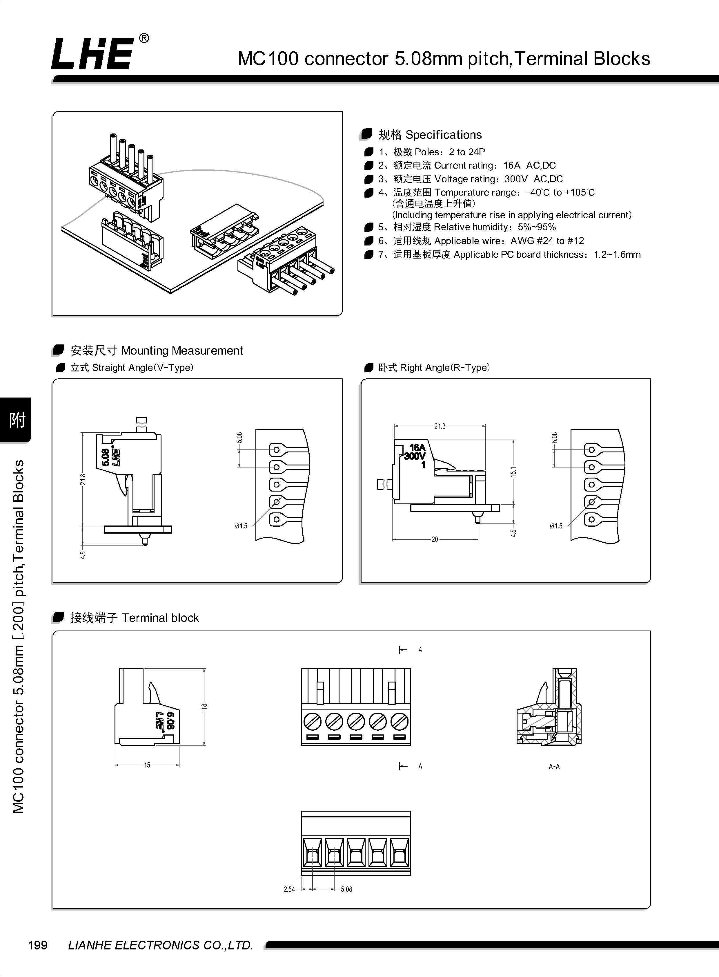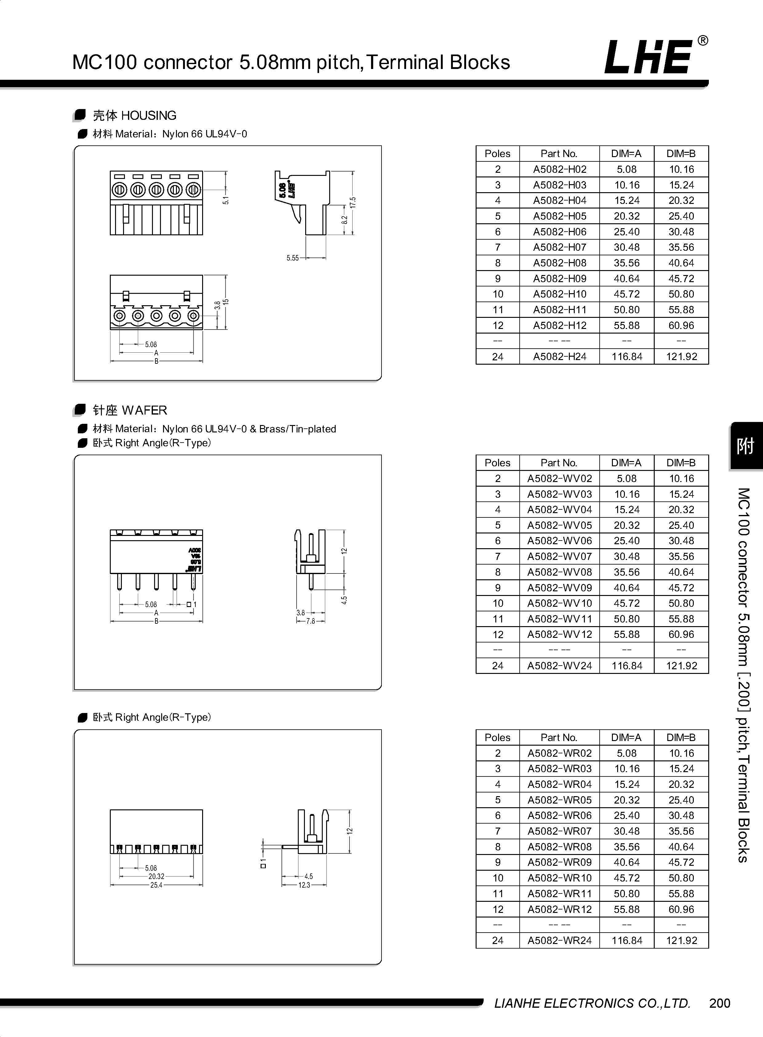 A5082系列是替代MC100 端子,黑色.間距:5.08mm 端子接線排.