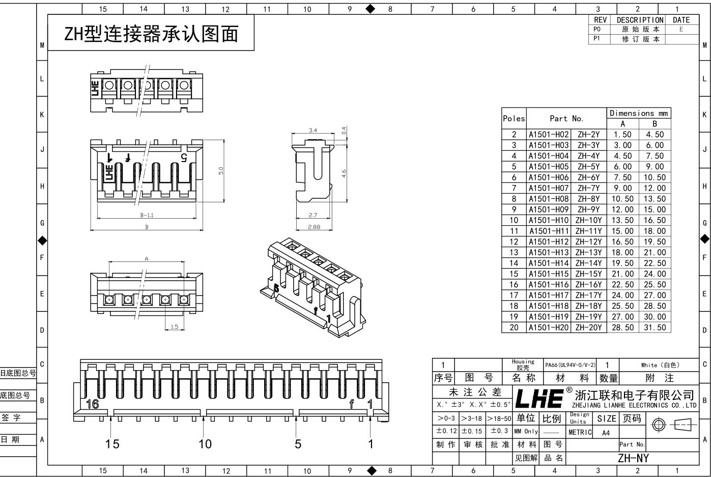 C1501&A1501(ZH&ZM)系列間距1.5mm,可替代JST ZH ZM系列。ZH壓接式和ZR絕緣位移連接器插座都可以由ZM連接器容納。完全罩頭提供保護(hù),從搖擺連接器來回一半交配和不交配。