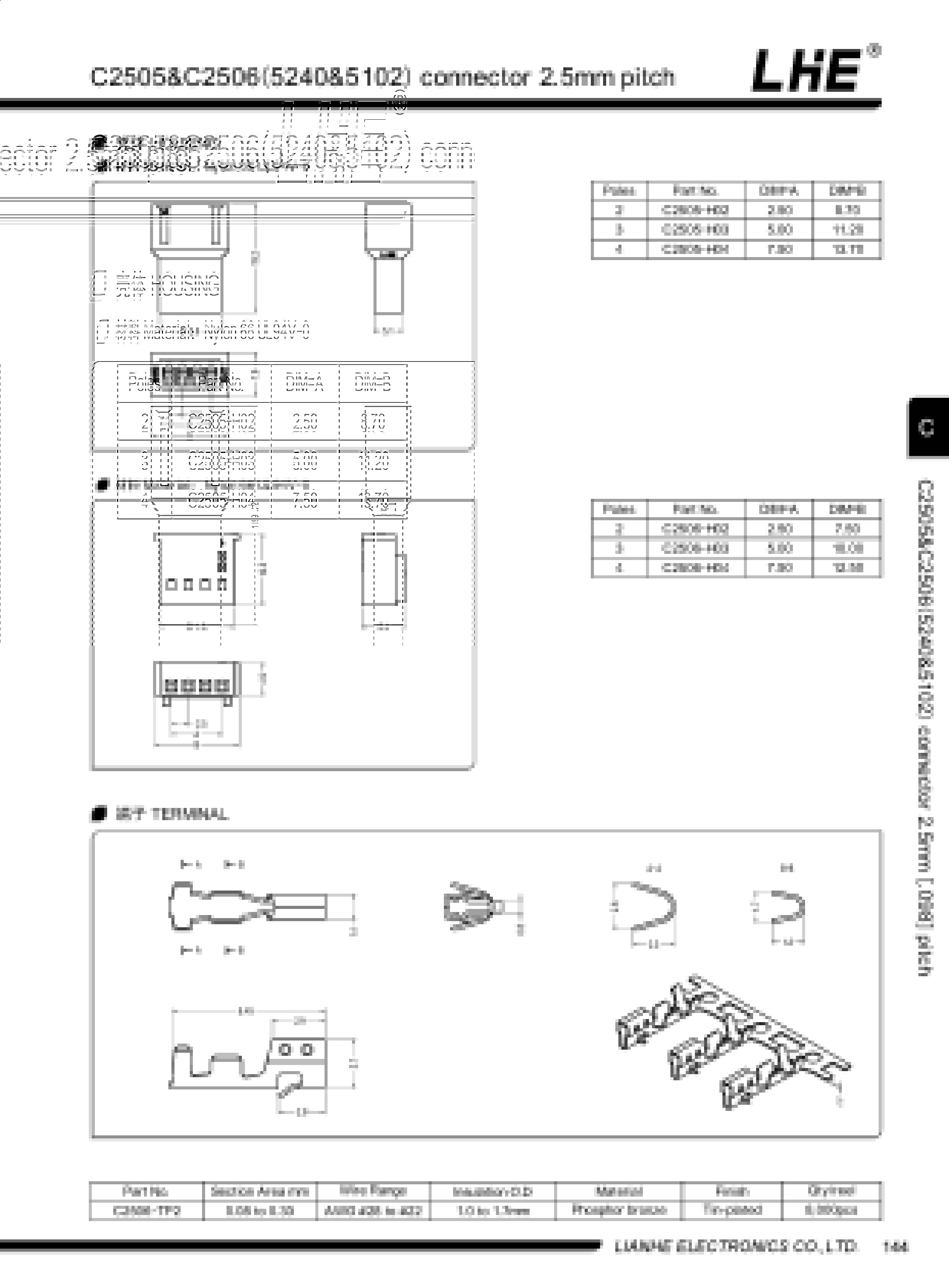 C2505&C2506(5240&5102)系列間距2.5mm,可替代MOLEX5240 5102,屬于Mini-Latch 2.50mm線對板/線對線連接器,是緊湊應用的理想選擇,在高溫設計中提供電氣和機械可靠性,滿足消費者和工業應用的要求。